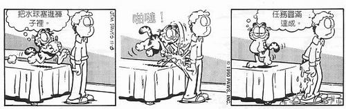 加菲猫最逗笑的演出,大部分都以他不幸的主人老姜为戏弄的对象。这些年来,加菲猫不断发挥他变化无穷的伶牙俐齿诬蔑老姜,也施加各种可笑的肉体凌虐。这些残酷的恶作剧从给老姜鞋底抹油,乃至趁老姜熟睡时剔光他的头发,甚至他还曾经把老姜的鞋带绑在一架即将飞往意大利的喷射机上!