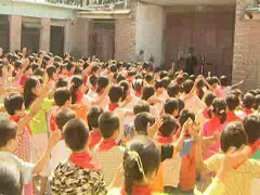 (画外音)这些天真无邪的孩子们,都来自贫困的外来务工人员家庭,而他们身后这座屋子和院子加起来仅仅150平方米的四合院,就是他们的学校。在这里上学的有100多个孩子,分属于学前班、一年级和二年级三个年级,但是老师就只有张丽琴一个,有的时候她不得不先安排一个年级的学生自习,然后再去给另外一个年级讲课。孩子们的课外活动也就是在这个几十平方米的操场上进行,这样的学习环境虽然简陋,孩子们学习起来却热情十足,谈起自己的学校他们都非常喜欢。