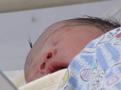 新生儿的母亲韩东:宝宝生在今天,我们也很开心,宝宝很幸运。