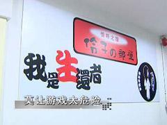 (画外音)这个十月,这家“鬼屋”迎来了开业后第一次客流高潮。“鬼屋”是近一段时间新兴的娱乐项目,以流行的恐怖片情节为背景,人物造型、布景、声音等完全模拟现实生活。游客要用20分钟的时间走过布置得阴森恐怖的房间,期间还会有很多由人扮演的鬼怪出没,故意惊吓游客。这样一项看起来极为恐怖的游戏吸引了很多年轻人,而且其中还有不少身心都尚未成熟的中学生。