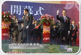 记者:观众朋友,你好。现在我所在的位置就是天津国际展览中心,我身后正在进行的就是2004年的天津香港周的开幕式。与往年相比,这一届天津香港周最大的特色在于它的主题是CEPA,将会利用CEPA这个主题,为津港两地相关的行业提供一个交流的机会合作的平台。