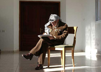 2004年8月24日,阿拉法特在拉姆安拉的官邸内阅读文件