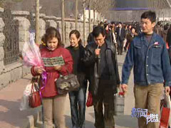 (画外音)4月2号一清早,记者就到了位于天津市北辰区的第一殡仪馆。尽管早有心理准备,这一天来扫墓的市民会达到十几万人次,但突然闯入视线的黑压压的人群还是让我们吃惊不小。殡仪馆门口,车辆早已在马路两边排起了长龙,交警们也在不停地忙碌着,疏导不断涌来的车辆和人流。