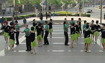 首先出场的是“欢乐健身舞”,参加展示21人,年龄从55岁到75岁不等。欢乐健身舞是他们在吉特巴舞蹈的基础上,自创、自编的集体健身舞。在天津市集体舞大赛中曾经获得第二名。节奏轻快,旋转自如,是这种舞蹈最大的特色。