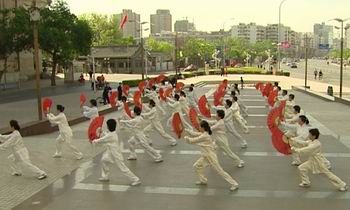 今天亮相的三支晨练队分别是“欢乐健身舞”队、“百人腰鼓队”和“太极功夫扇”队。这三支队伍可是从河西区300多个晨练队中层层选拔出来的。能从全区这么多晨练点的健身队伍中脱颖而出,他们一定是各具特色。