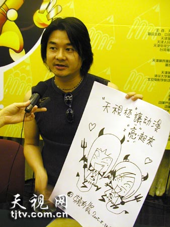 | 台湾著名漫画家赖有贤用自己的即兴创作表达对大赛的期望 |