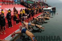 11月30日,2005年全国冬泳邀请赛在湖北长阳清江水域举行。