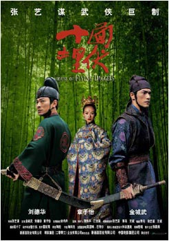 张艺谋说飞刀是冷兵器时代最强的武器,于是他在影片《十面埋伏》中特意选择了飞刀这样一个力度感很强的兵器,化解阴柔,增加势气。我们看到的武侠电影里描写飞刀的情节并不多,纵观武侠历史,最出名的飞刀是李寻欢,最潇洒的飞刀是《边城浪子》中的叶开,可惜电影中真正感受到飞刀威力的作品并不多,而影片《十面埋伏》里则刻意选择了一些传统武侠片中不常出现的武器作为表现对象,比如竹林打斗中时那些裂开的竹子,还有弓箭,还有的就是飞刀,往往冷门的东西也许更能引人注目吧。