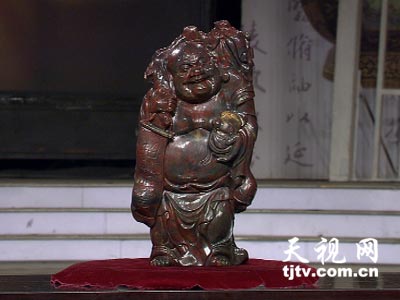 第二位持宝人的藏品是一件人物摆件,它貌似鸡血石、色如朱砂,据持宝人介绍这叫朱砂鸡血玉。