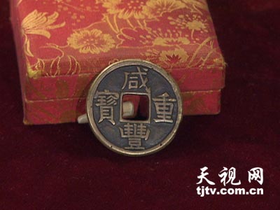 第三位持宝人带来一枚咸丰重宝。这种钱币铸于清文宗咸丰三年,当时危机四伏的清政府,为了挽救行将崩溃的币制,因而铸造了咸丰重宝大钱。