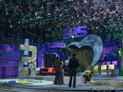 (现场)记者张萌:我现在在3·15晚会的彩排现场,今晚这台晚会就将为您奉上,我们看到,现在舞台已经基本搭建完毕,各部门工作人员也已经准备就绪。