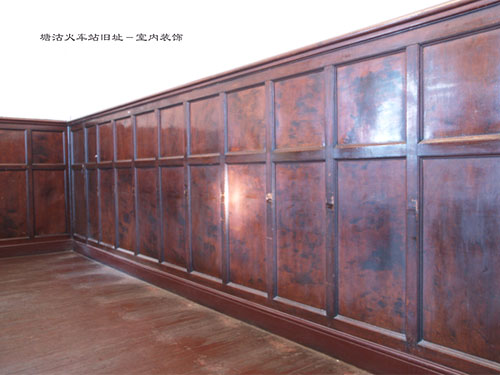 旧址建筑中只有一处50余平米房间可见到原有的室内装饰风格:木质地板、木质大方格子式墙围子,白灰摸墙、白灰摸顶棚,有石膏线装饰棚顶。