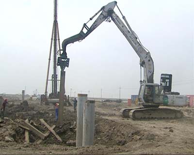 解说词:天津碱厂从2005年开始搬家,它的新家就安在了临港工业区里。在临港工业区内搞建设,遇到的最大难题,就是打地基。工程负责人告诉我们,为了保证地基有足够的承载力,在打桩前,施工人员首先对土地进行了特殊处理,通过真空预压,把土地夯实,将里面的水分排出。半年的时间,建设者们就从工地上排走了数十万吨海水,平整出了近2平方公里的土地。夯实地基后,整个工程现在已顺利进入到打桩和厂房建设阶段。