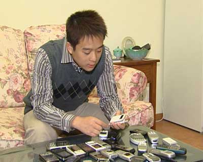 解说词:您瞅瞅这一桌子的手机,都是小段一个人的。小段说,他从02年开始收集手机,那时候只是单纯喜欢手机,没想到越攒越多,现在成了个手机专业户。