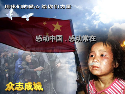 2008年5月12日14点28分,我国四川省汶川县发生8级地震,我们的同胞在瞬间失去了生命,他们昔日美丽温暖的家园,成为一片废墟。一方有难,八方支援,这千里之外的灾情一直牵动着千万海河儿女的心。