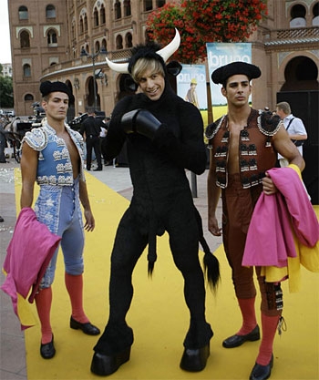 日前,影片《布鲁诺》在伦敦的莱斯特广场举行首映式。萨莎-拜伦故意穿着和片中的角色相同的恶搞打扮出席,把布鲁诺这个滑稽的同性恋男人表现得惟妙惟肖。他在和围观的观众们致意的时候特意换成片中的角色布鲁诺的奥地利口音,并模仿阿诺德•施瓦辛格向粉丝们致谢。剧中的布鲁诺就是一个奥地利的时尚记者,只是他的性取向和大多数人不太一样,他还收养了一个孩子,他收养孩子的唯一理由就是现在这已经成了一个风尚。据了解,这部喜剧影片《布鲁诺》是前年的卖座喜剧片《波拉特》的姊妹片。