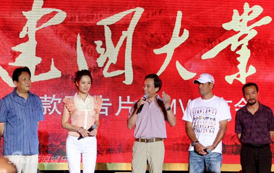 国庆献礼片《建国大业》昨天在北京举行新闻发布会,导演韩三平、黄建新携毛泽东的扮演者唐国强,宋美龄的扮演者邬君梅,李济深的扮演者金鑫,白崇禧的扮演者尤勇、林彪的扮演者由利平,以及主题曲演唱者孙楠共同到场为影片揭幕最新款预告片、海报及主题曲MV。在这版预告片中,黄晓明、邓超、范伟、郭德纲等又一批新角色的出镜,则再次展示了影片的空前阵容。