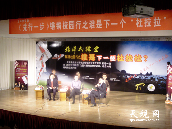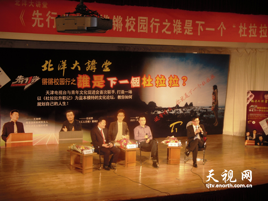 5月10日晚,天津大学大学生活动中心能容纳500多人的讲堂内座无虚席,一场名为:锵锵校园行——《谁是下一个“杜拉拉”?》的讲座在这里举行。这是天津电视台滨海频道《先行一步》栏目在观众活动月中的首次活动。