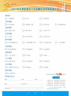 1.请在本选票中选择您支持的栏目,划√,每张选票可选择1-10个栏目,多于10个为无效选票。