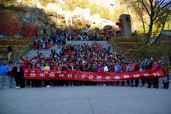 25日一早,大家在凤凰国旅所在的今晚报大厦楼下集合,分乘三辆大巴,前往北京。中午,“爱在金秋快乐行”听友旅行团一行来到了北京房山十渡入住别具一格的农家院。午饭过后,就乘车前往仙栖洞游览。